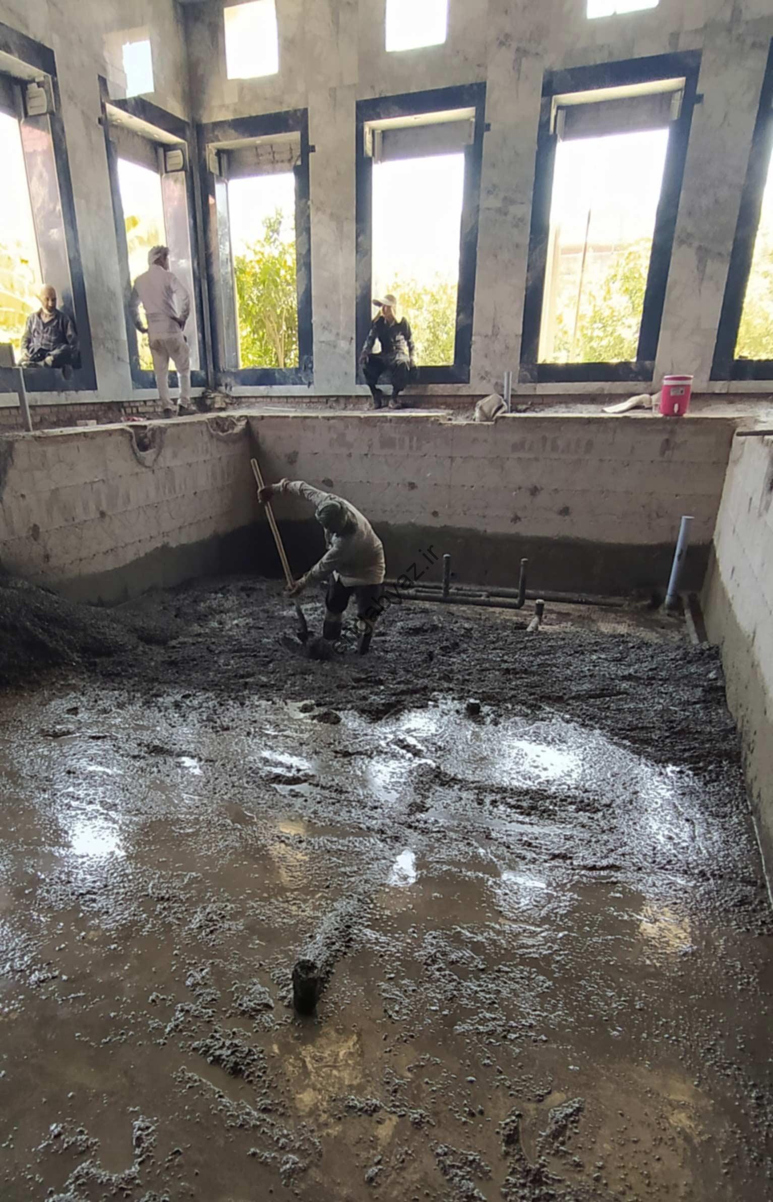 اطمینان کارفرما از عدم نشت سازه استخر قدیمی مخصوصاً در محل های تخریب شده ، کف سازی بتنی برای پوشاندن تاسیسات کار شده