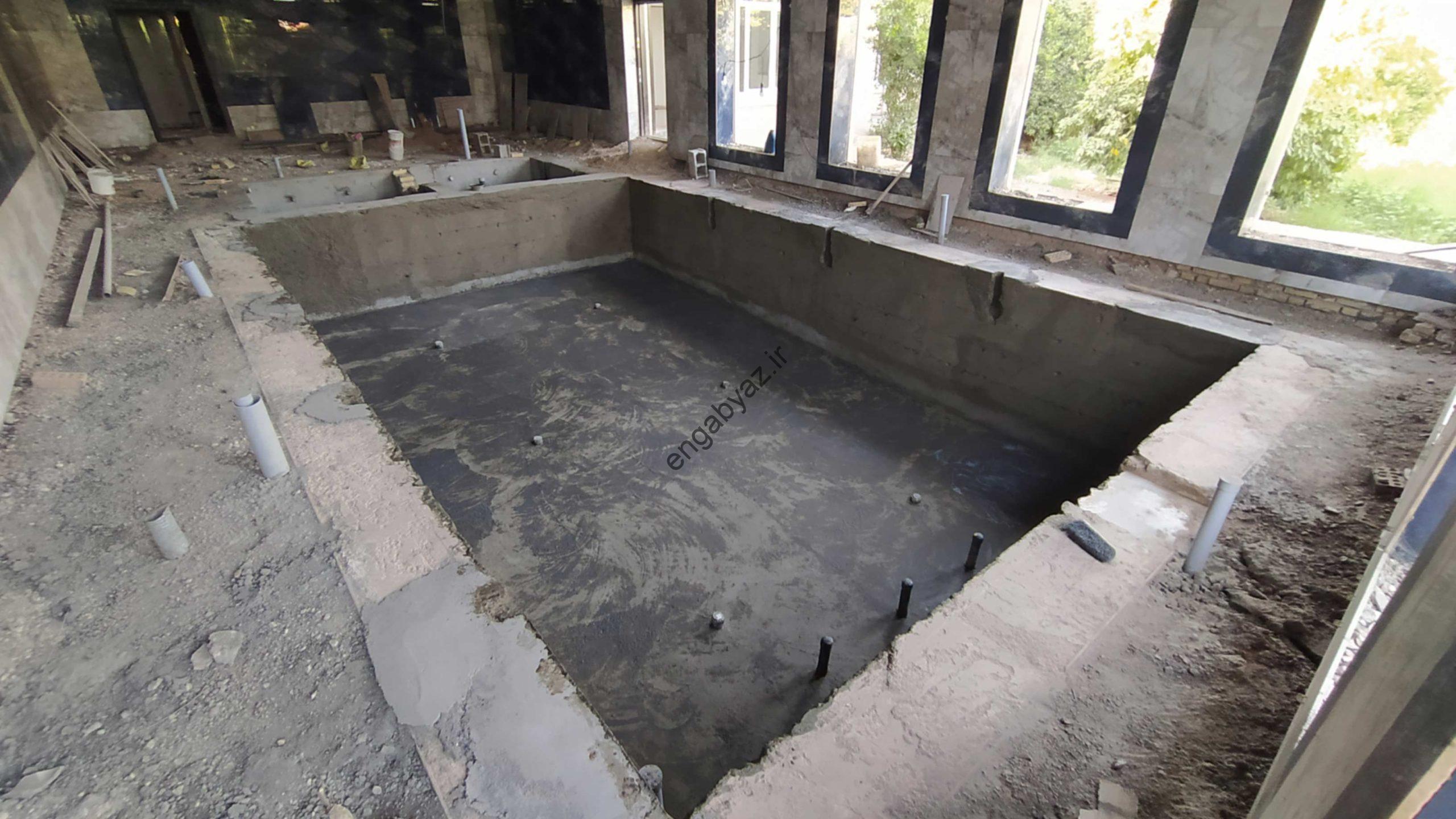 آب بندی استخر با چسب دو جزئی پلیمری به مساحت تقریبی 110 متر مربع